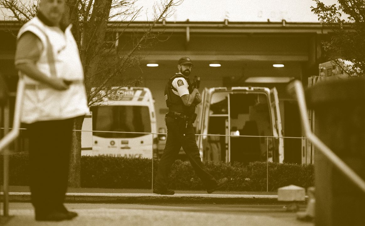 Police publicly confirm a ‘serious firearms incident’. Around now, ambulance crews start arriving at Linwood Ave too. Special emergency response officer Karen Jackson is among the first on the scene, clad in a ballistic vest and helmet.