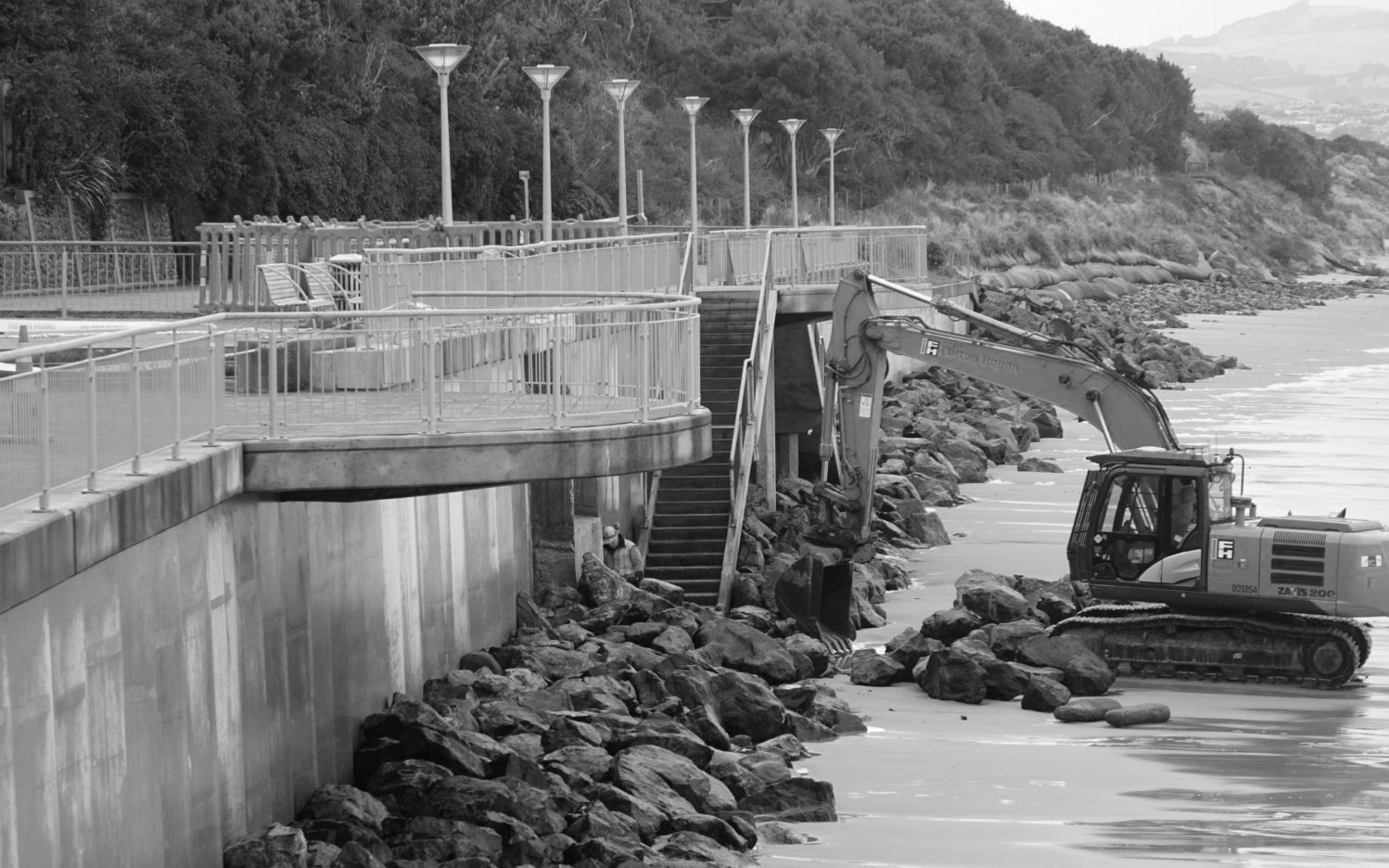 A digger works on a sinkhole at Saint Claire's beach, Dunedin.